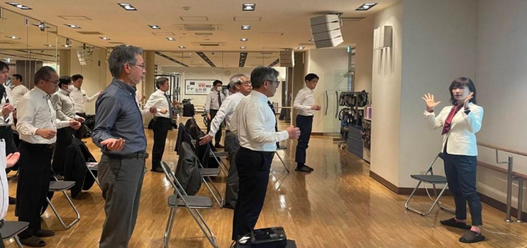 専門用語を使わず、姿勢チェックやストレッチを交えた完全参加型スタイルで、受講者満足度95%超。